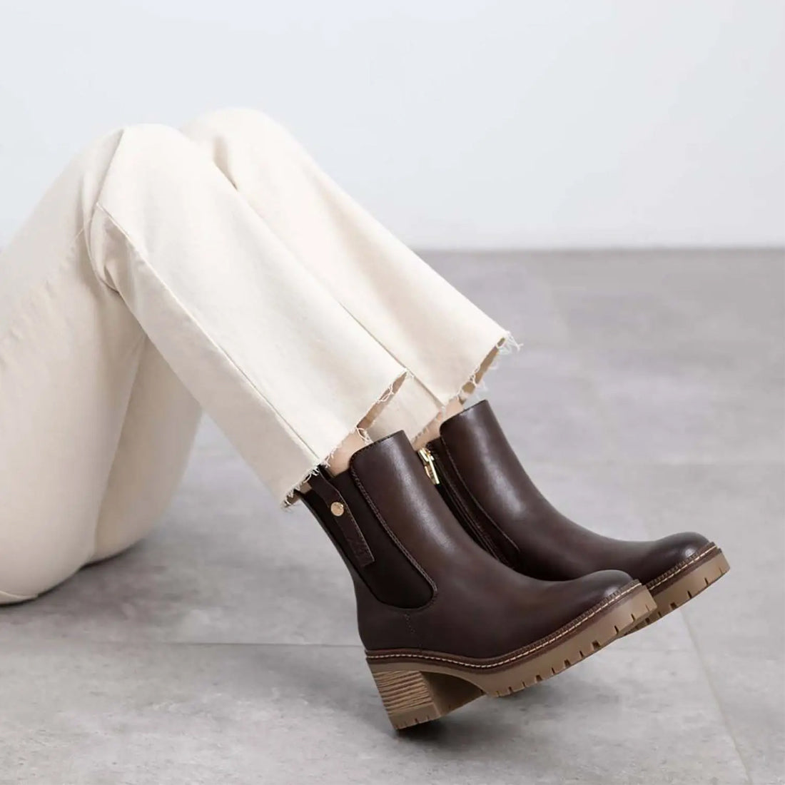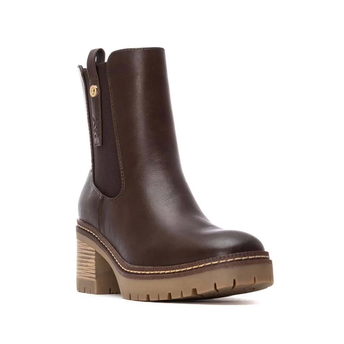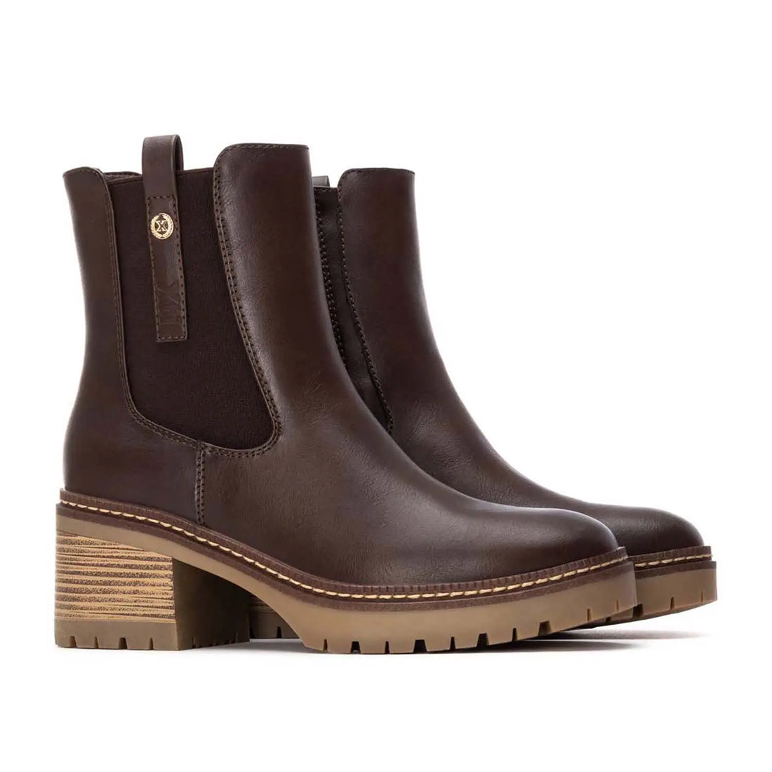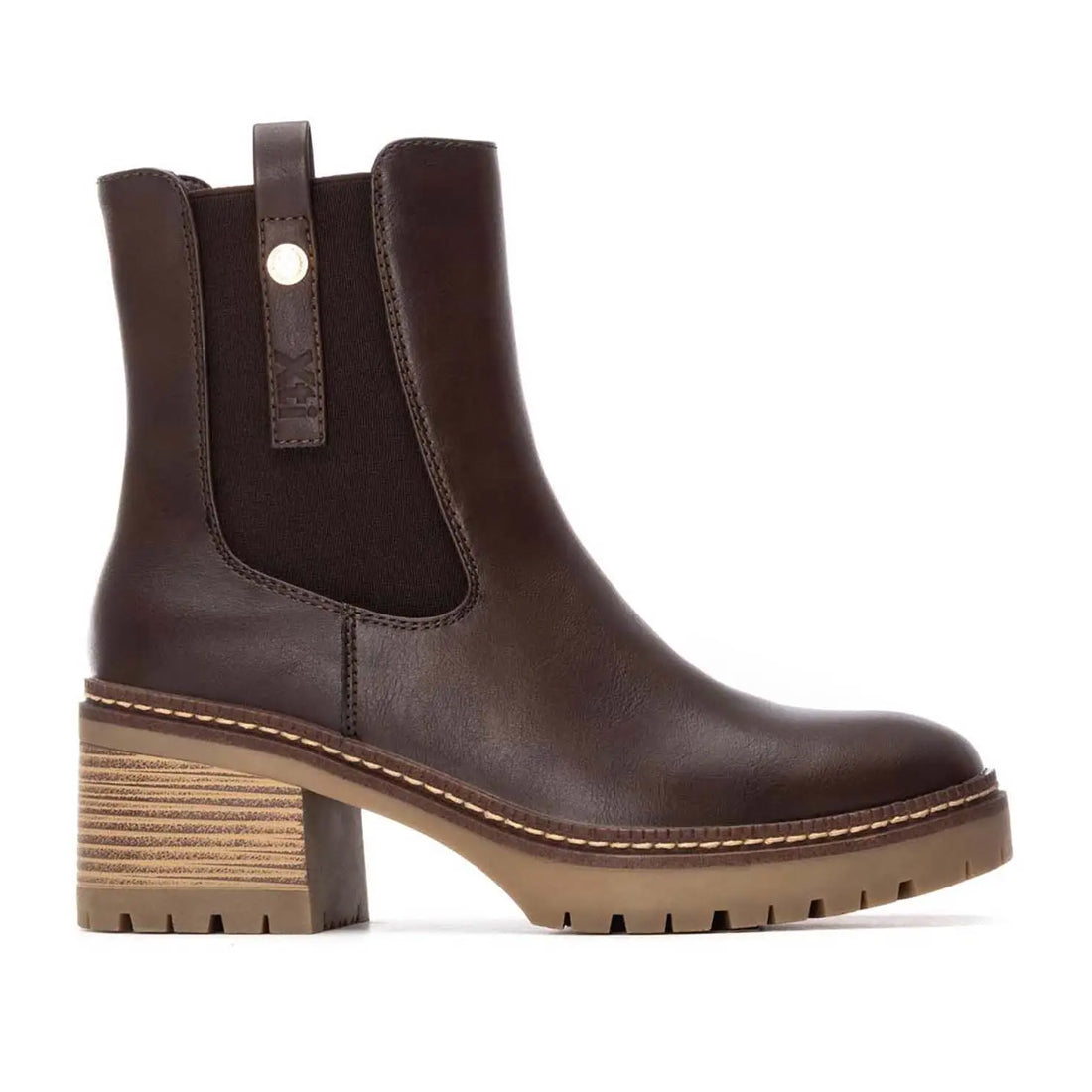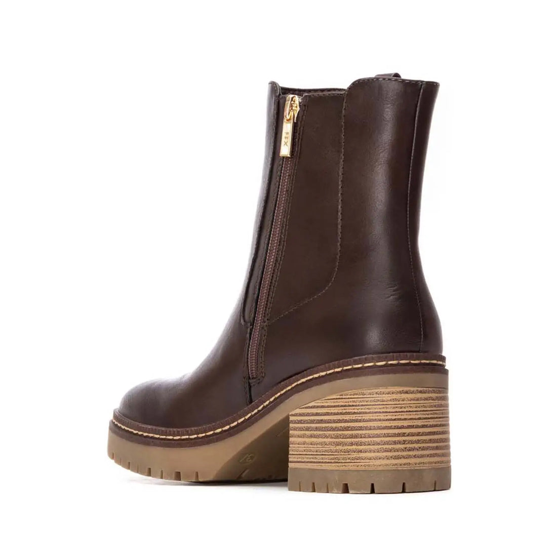 XTI 144456 scarpe da donna stivaletti con tacco effetto legno in ecopelle marrone vegan shoes