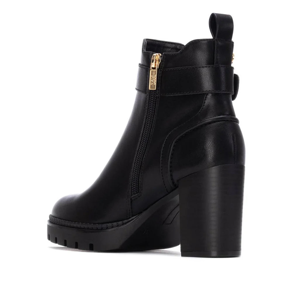 XTI 144521 scarpe da donna stivaletti con tacco alto effetto legno in ecopelle nero vegan shoes