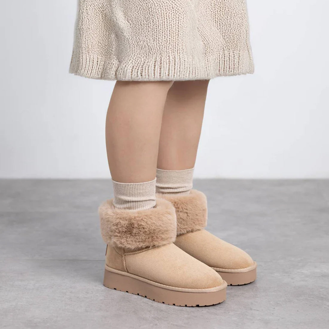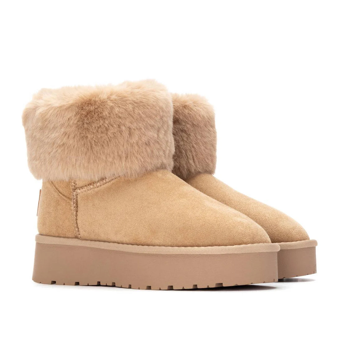 XTI 144719 scarpe da donna stivaletti con pellicciotto in ecopelle beige vegan shoes