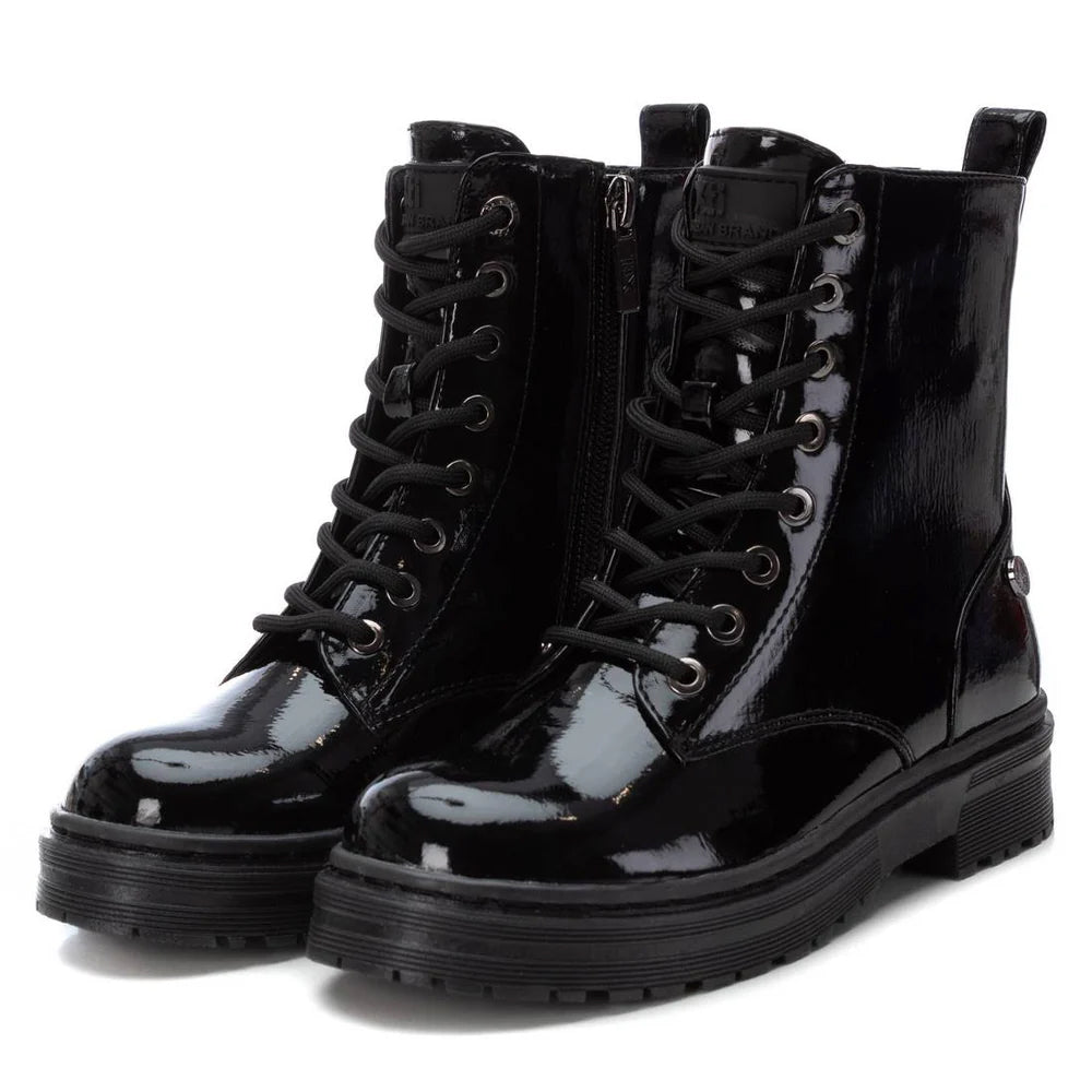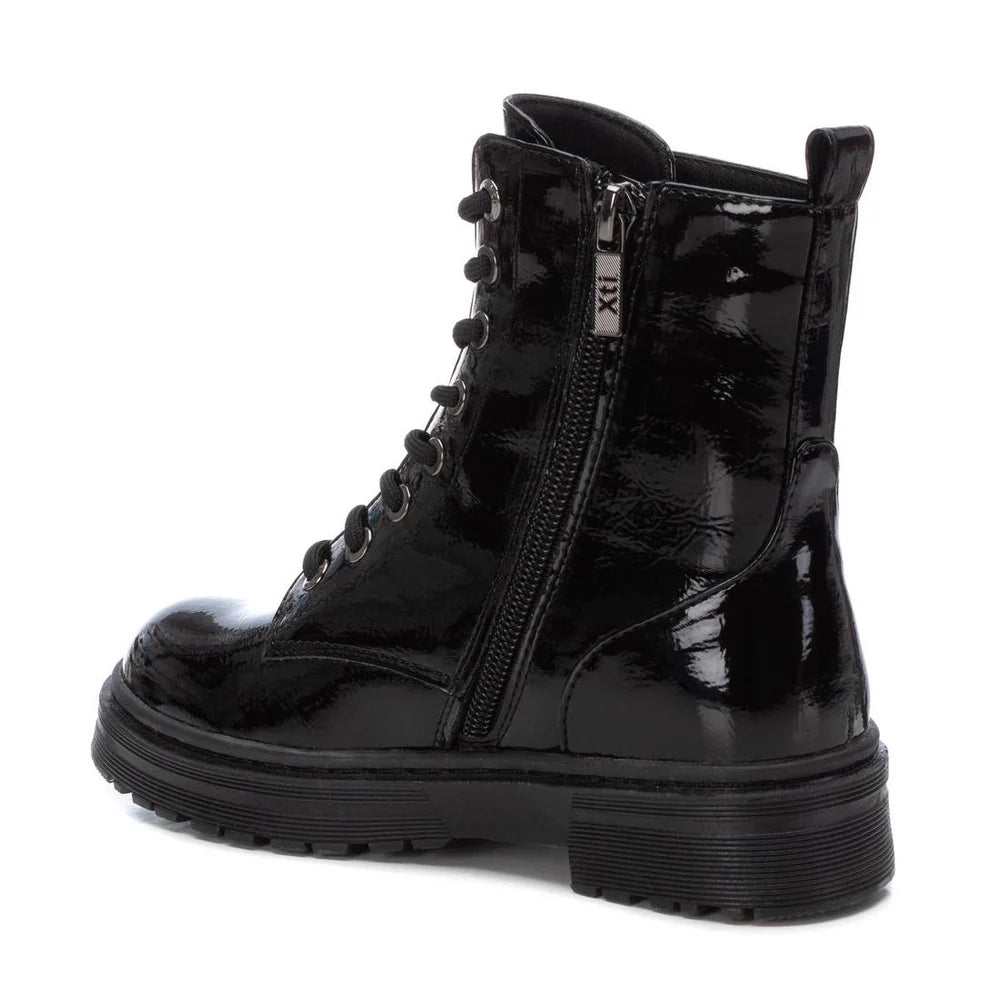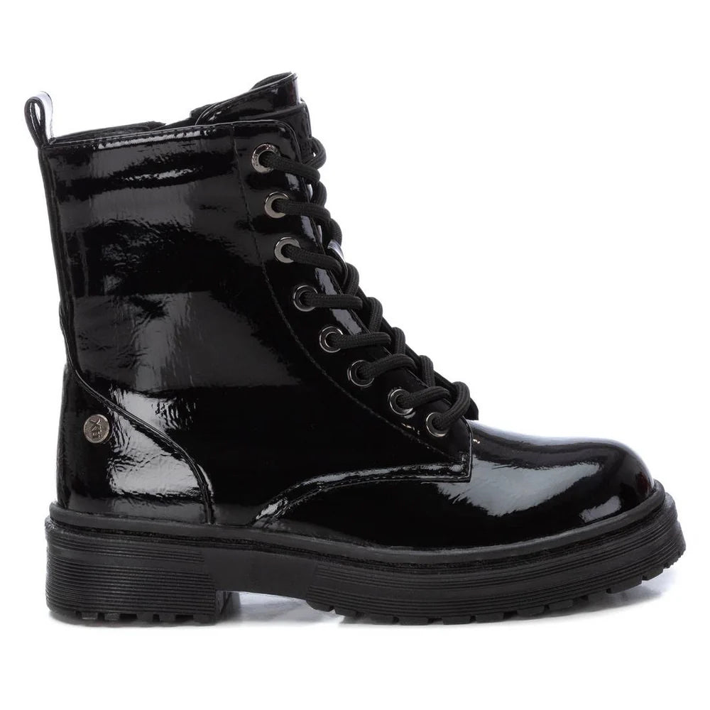 XTI 150980 stivaletti da bambina ragazza in vernice nero con lacci e cerniera anfibio vegan shoes