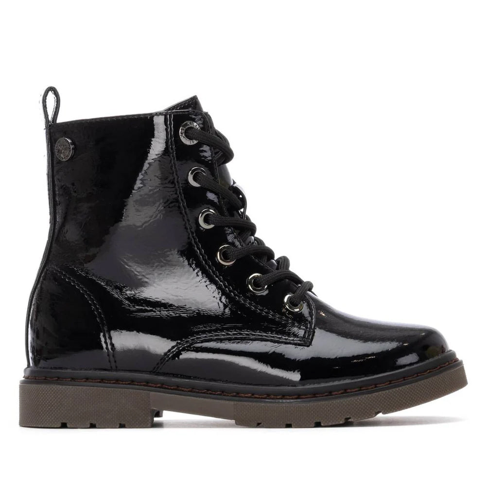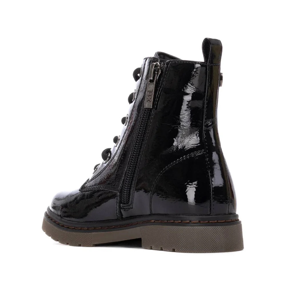 XTI 151327 stivaletti da bambina in vernice nero con lacci e cerniera anfibio vegan shoes
