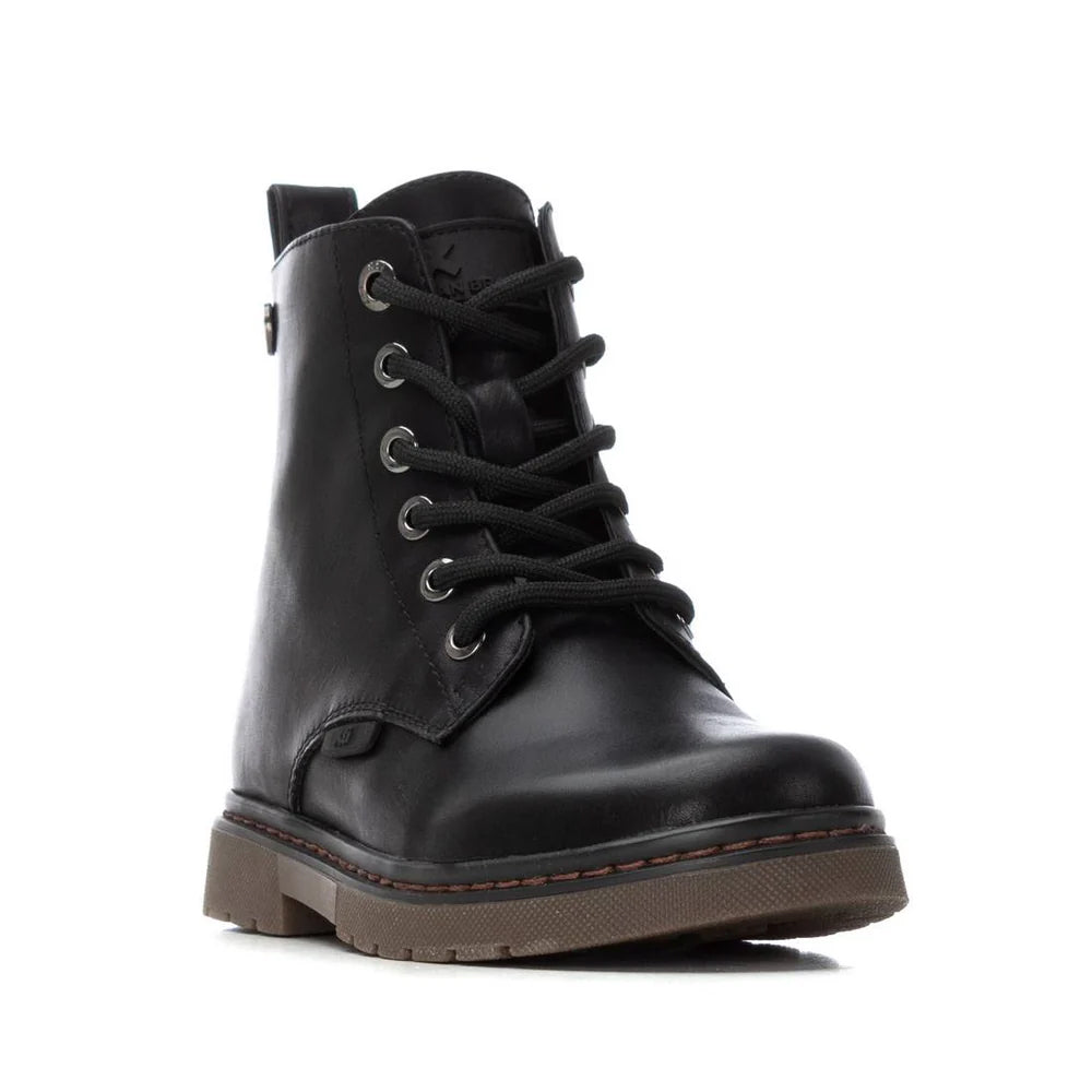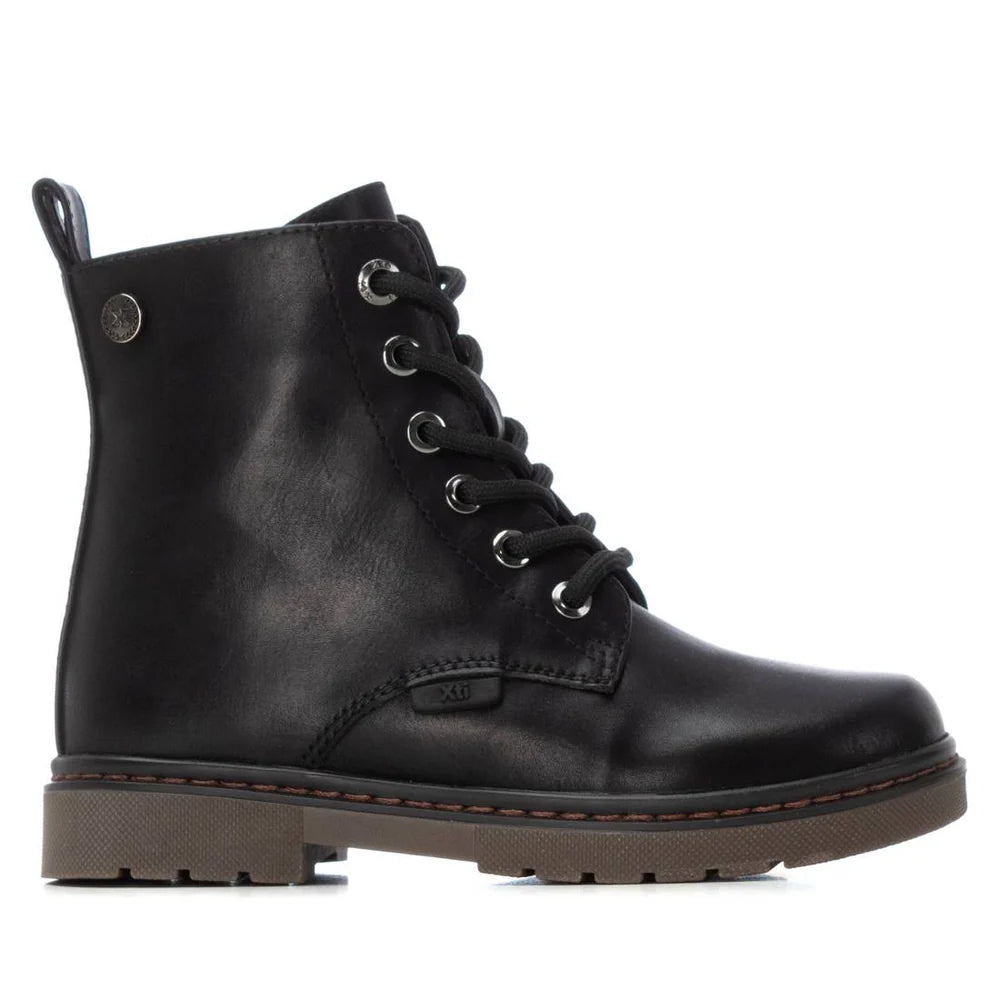 XTI 151329 stivaletti da bambina in ecopelle nero con lacci e cerniera anfibio vegan shoes