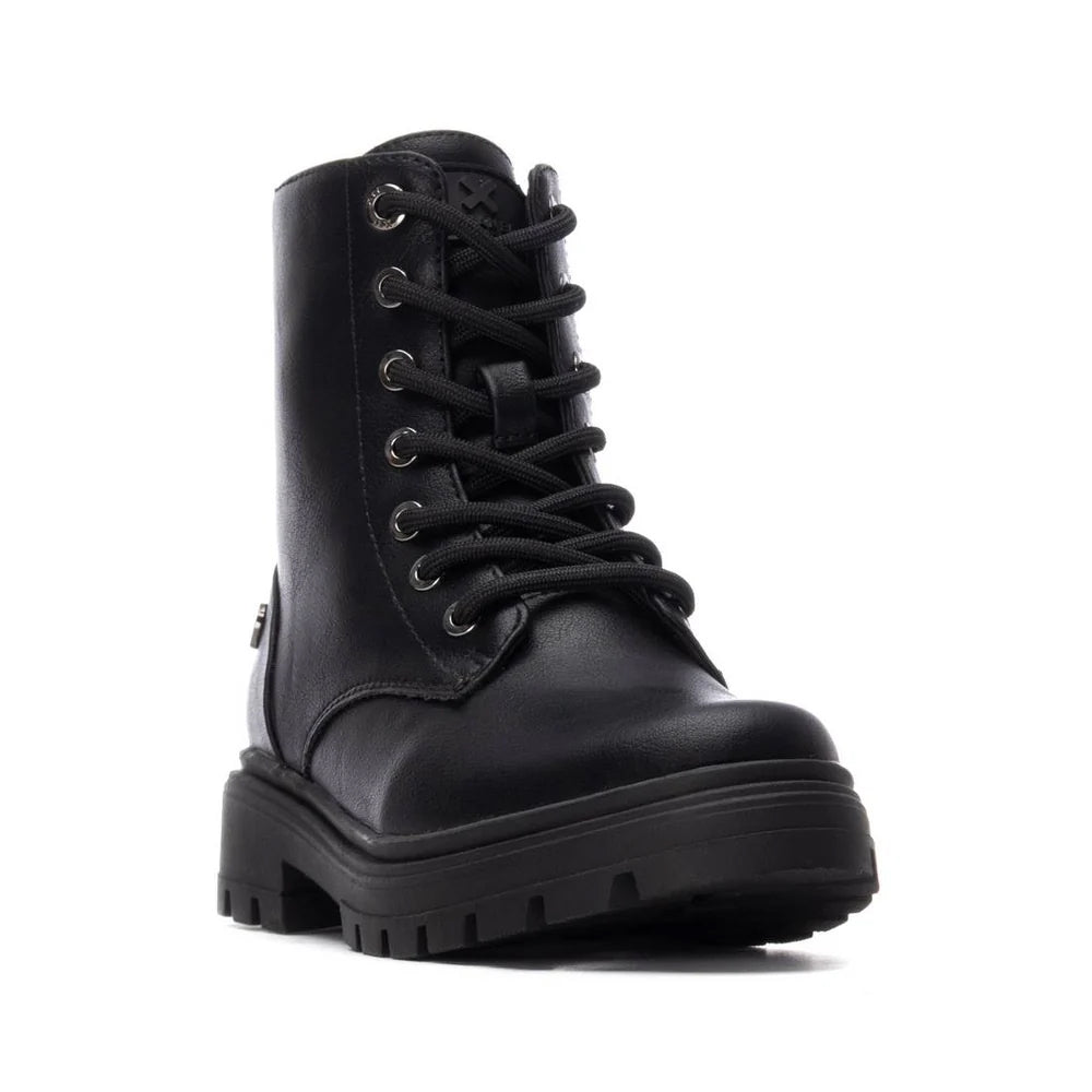 XTI 151331 stivaletti da bambina ragazza in ecopelle nero con lacci e cerniera anfibio vegan shoes