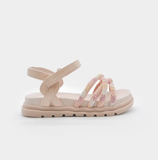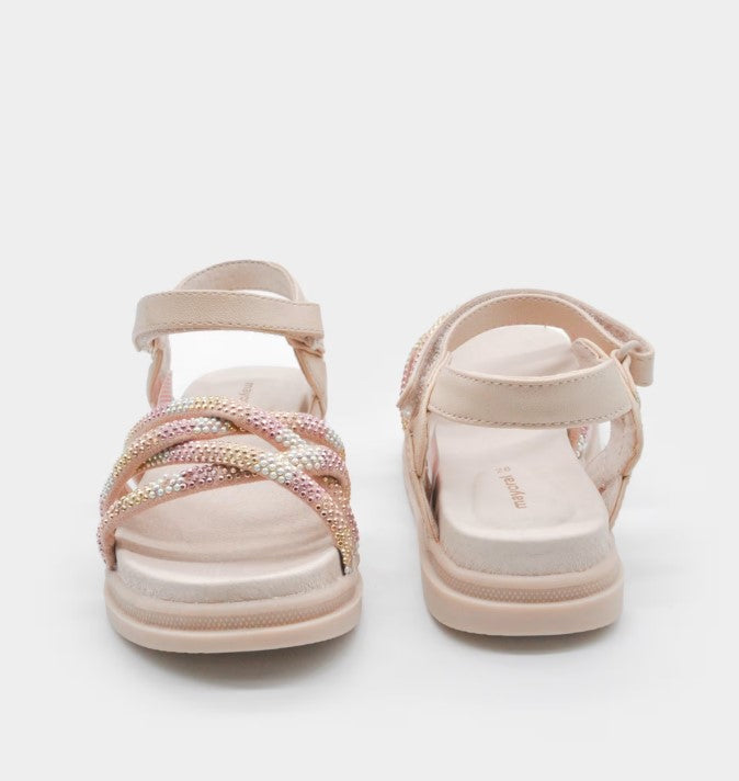 Mayoral 43738 45738 sandali da bambina eleganti con brillantini chiusura a strappo sottopiede imbottito in pelle