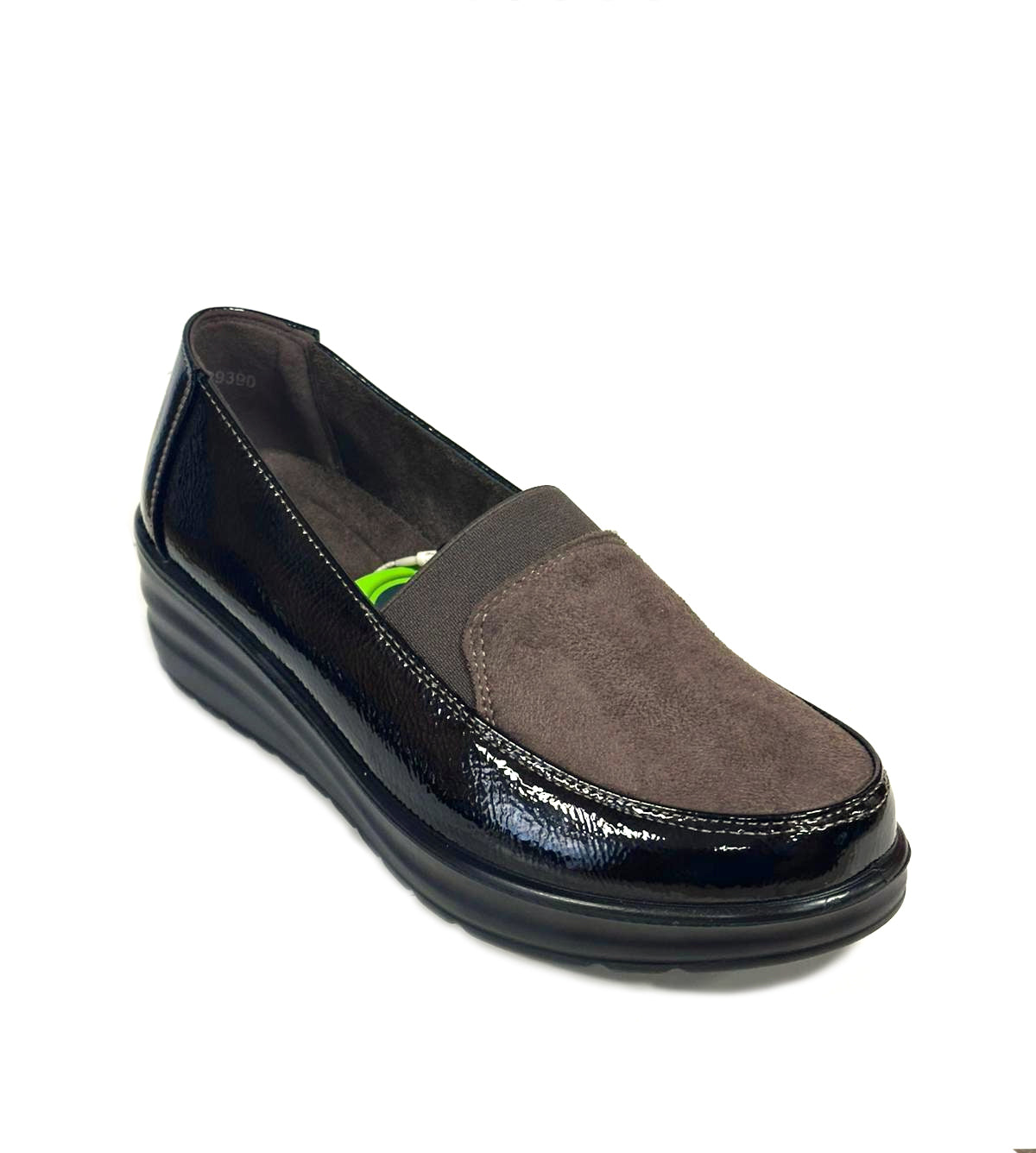 Amarpies scarpe da donna con zeppa mocassini in ecopelle camoscio e vernice con plantare in memory foam