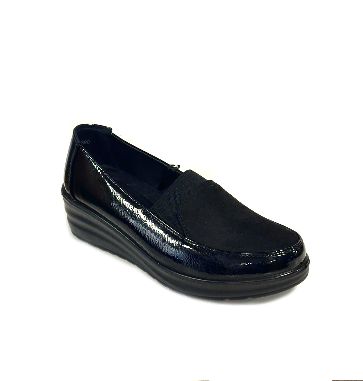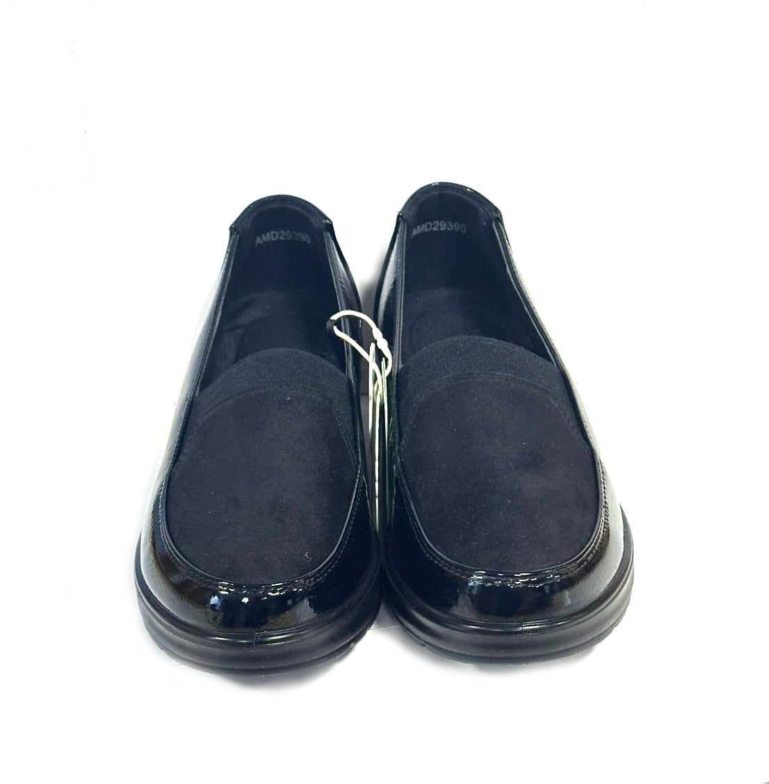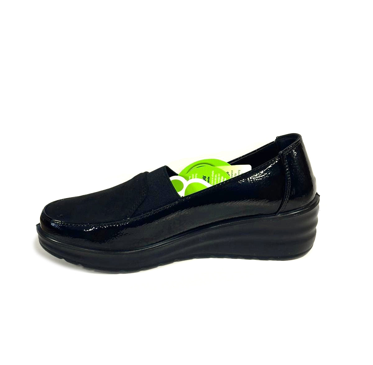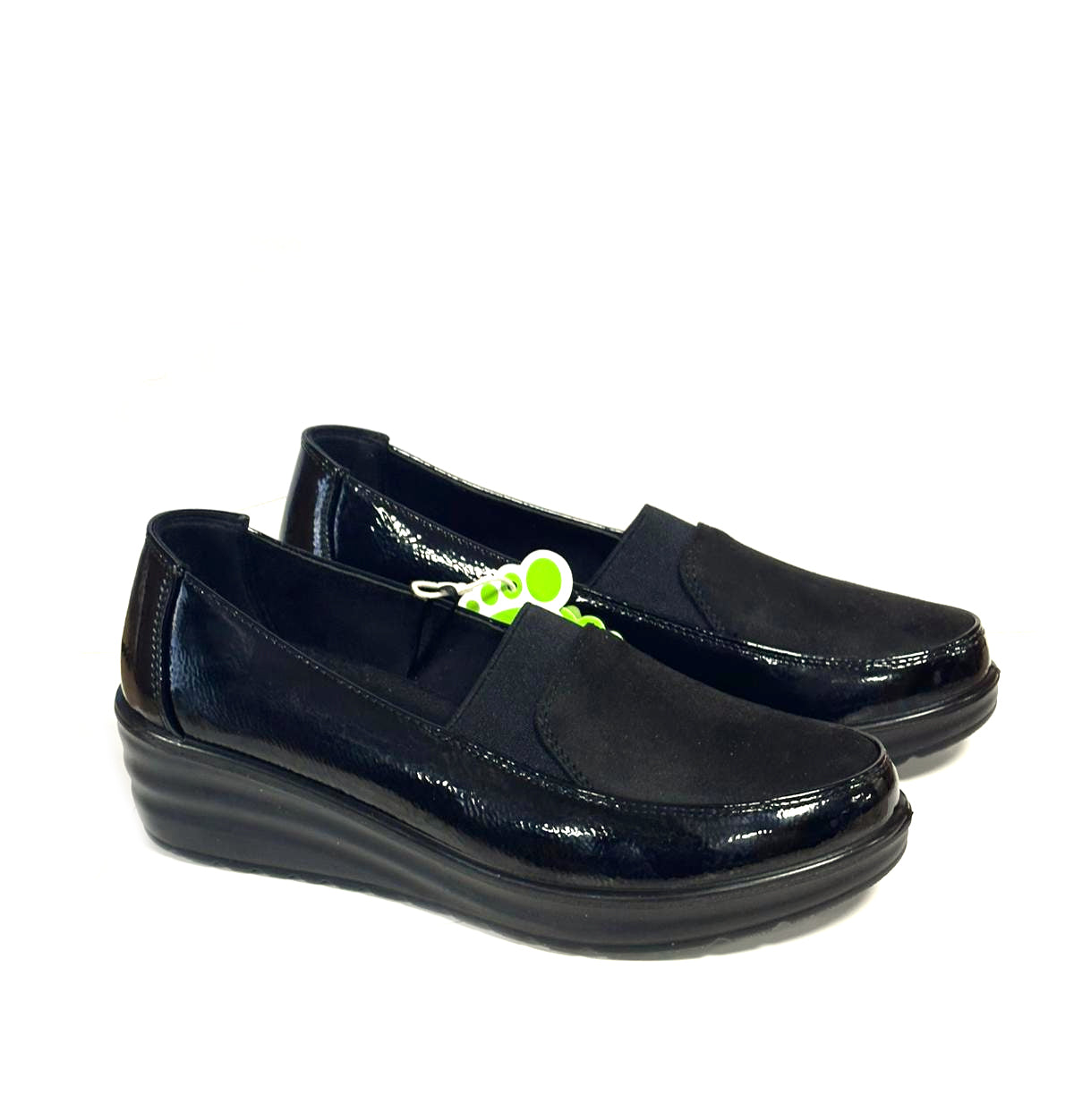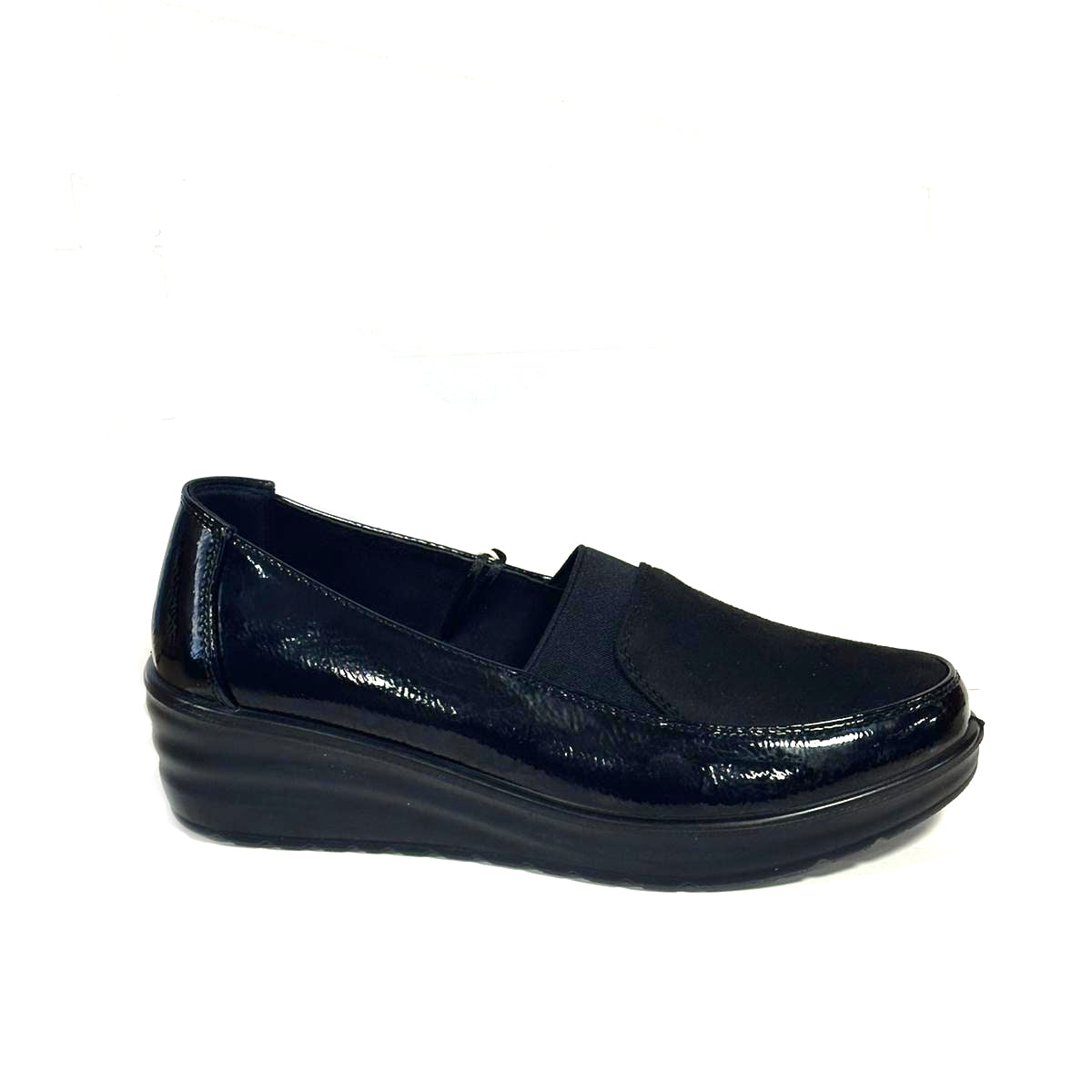 Amarpies scarpe da donna con zeppa mocassini in ecopelle camoscio e vernice con plantare in memory foam