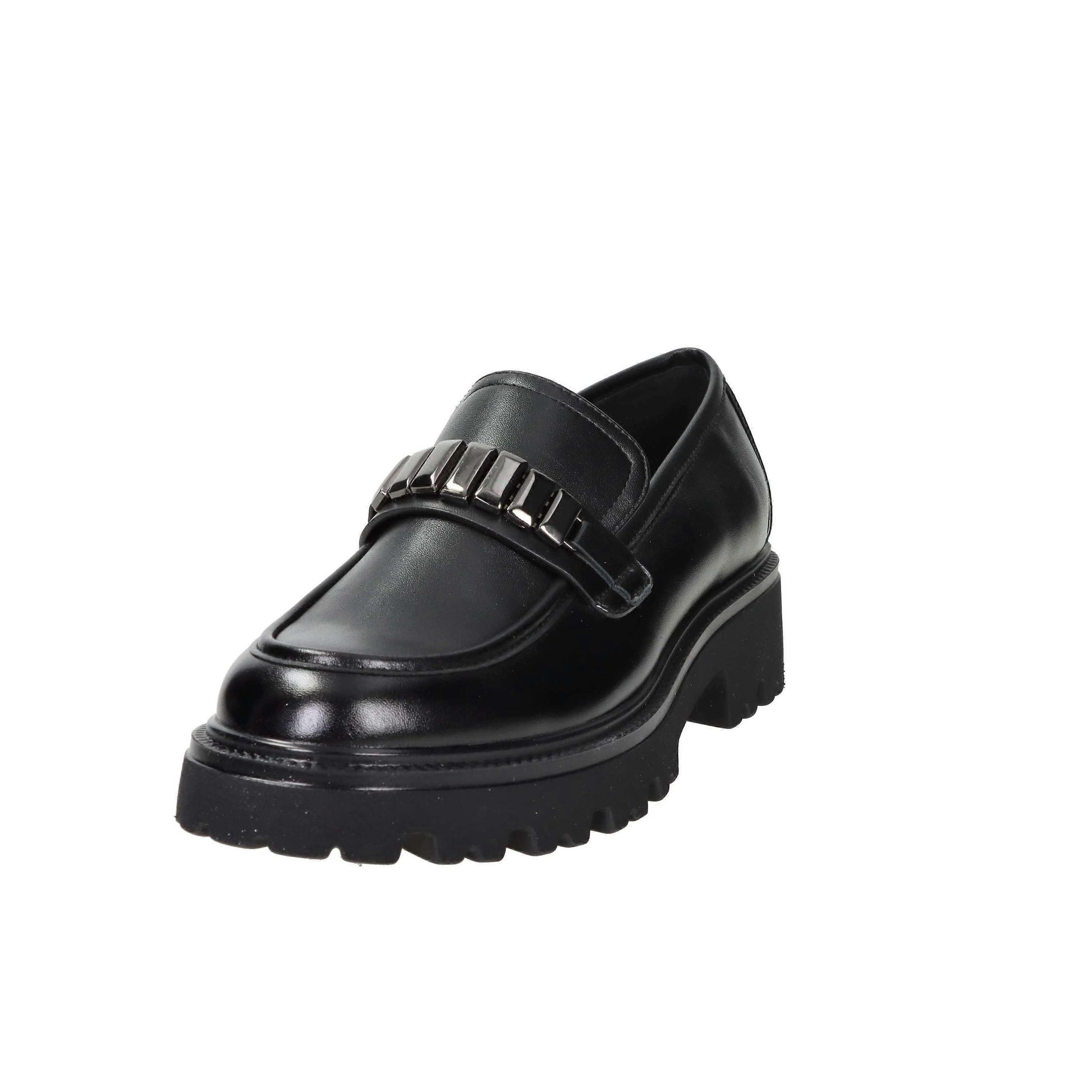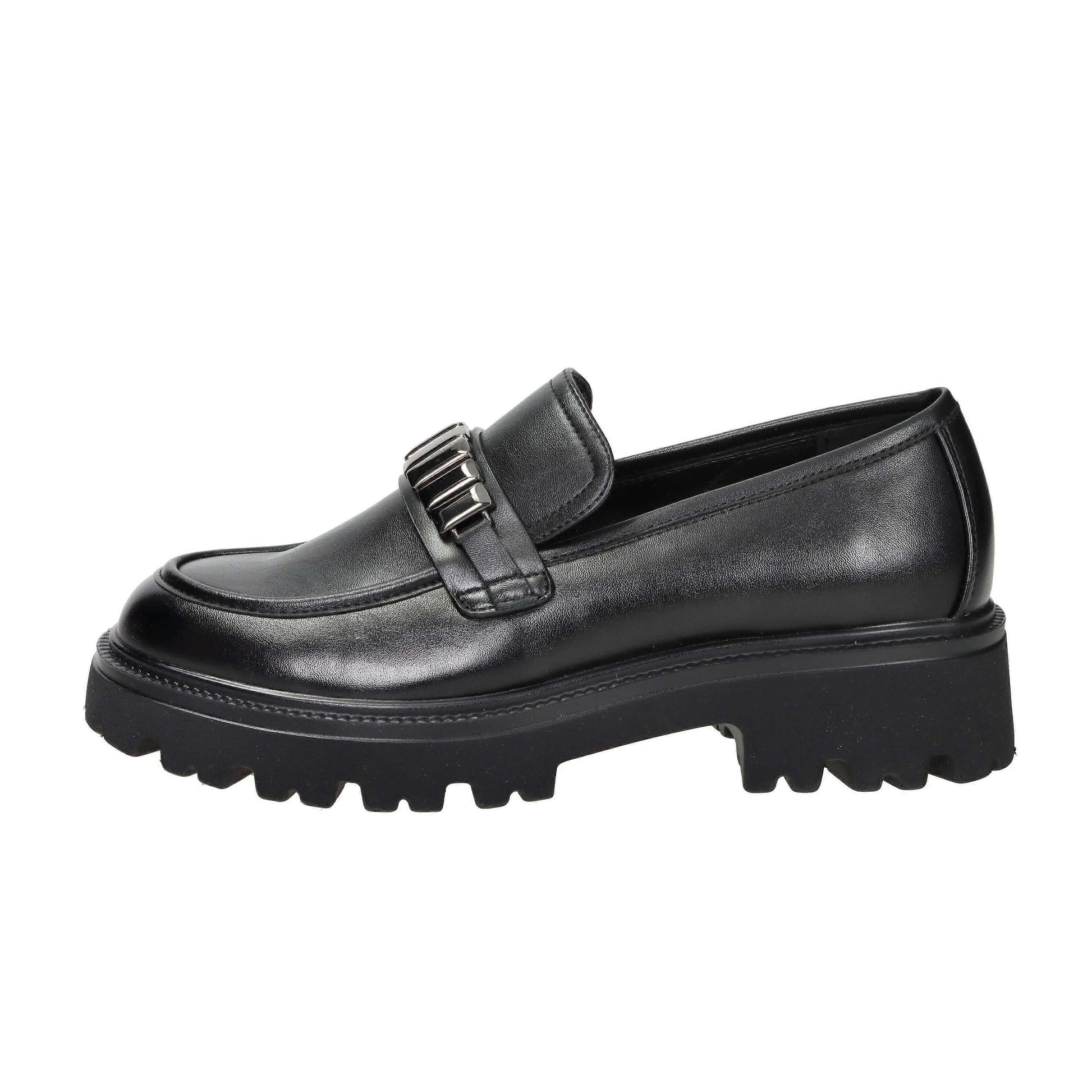 Keys 11461 scarpe da donna mocassini con fondo in gomma, fibbia, in ecopelle nero